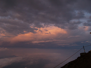 8合目も近くなってくると雲が眼下に広がり、空もかなり深い色をしています。それに反比例して山肌は色がなくなってくるというか、殺風景な感じになってきます。