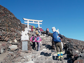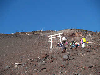 そして9合目到着。エラいもんです、嫌だとか疲れたとか言いながら、一歩一歩歩いて行けば近づいてくるのですから。お鉢めぐりをする元気もなく、長居してもしょうがないという事でそそくさと下山開始。