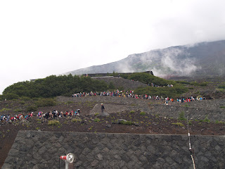 登山開始は朝6時頃でした。頂上でご来光を拝み終わって下りてくる人達が半端なくいましたねぇ。この本8合目からの道は砂利道で歩きにくくとっても疲れました。まだ階段じゃないだけいいかも、という感じではありましたが。