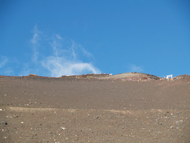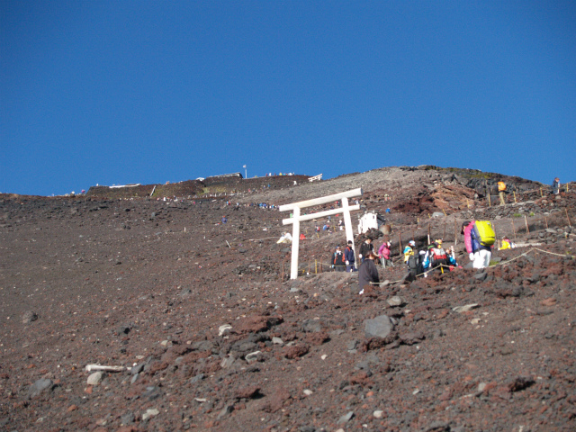 そして9合目到着。エラいもんです、嫌だとか疲れたとか言いながら、一歩一歩歩いて行けば近づいてくるのですから。