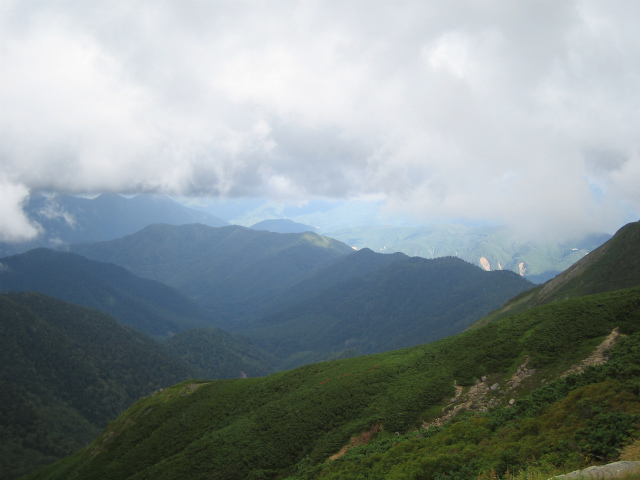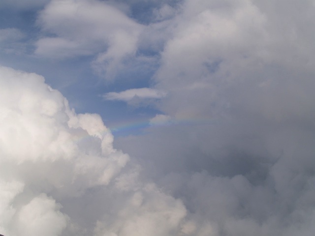 ここは7合目だったかな。雲は抜けてきました。岩場も結構厳しいし、階段の道はももを上げなければいけないので足にキますね。