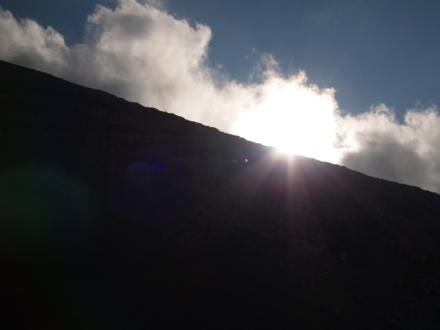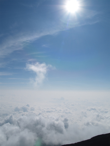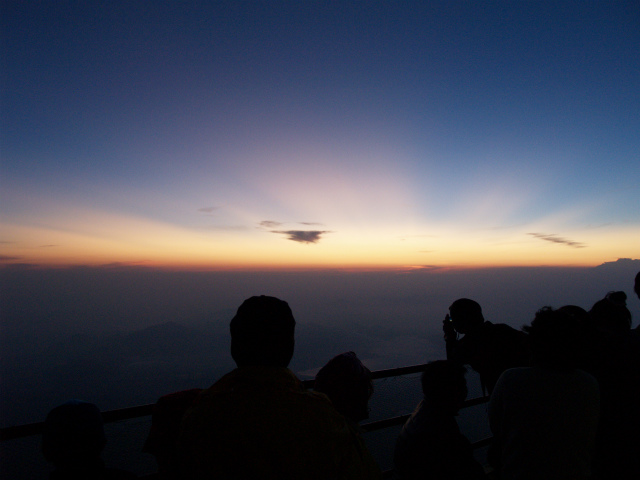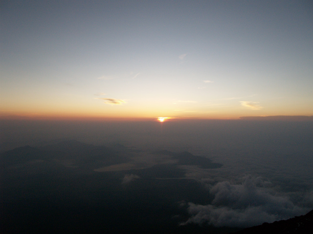 そして無事、ご来光を拝むことができました。「日本の夜明けぜよ」なんて台詞が何回も頭をよぎりましたねぇ。ただ頭痛がガンガンで「下りようよ」って言葉がのど元まで出かかっていましたけど。