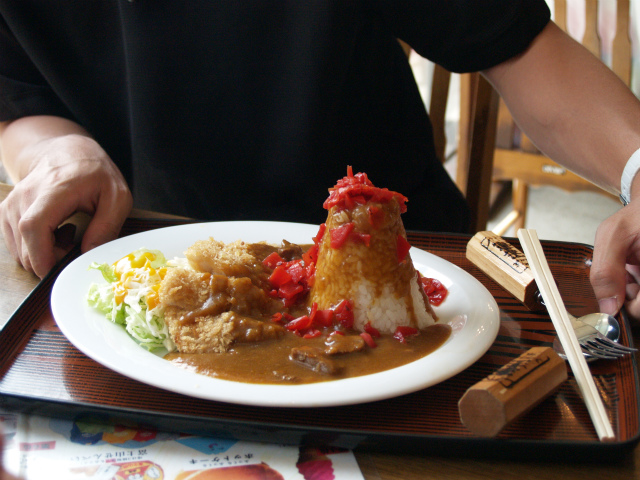 5合目は大混雑でしたが、体をならすため1時間位はとどまろうと決めていたので、富士大噴火カレーを食ったり、
