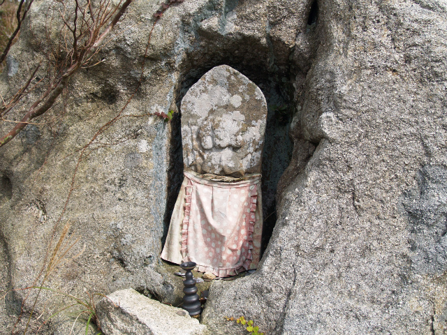 山頂近くの顔が三つあるお地蔵さん。ちょっと怖い。