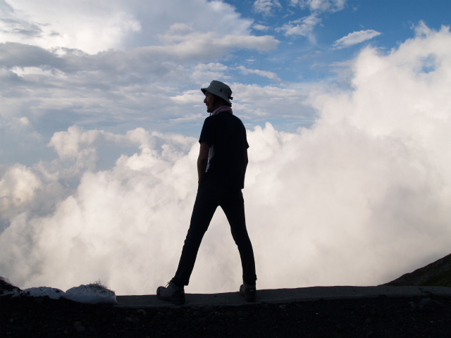 雲海を前にニヤける僕。人って字に見えてきませんか?もうかなり疲れていますが、