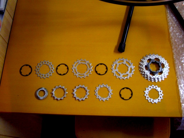 スプロケットはアルテグラ12-25T。並べてみました。順番は間違えようがないです。